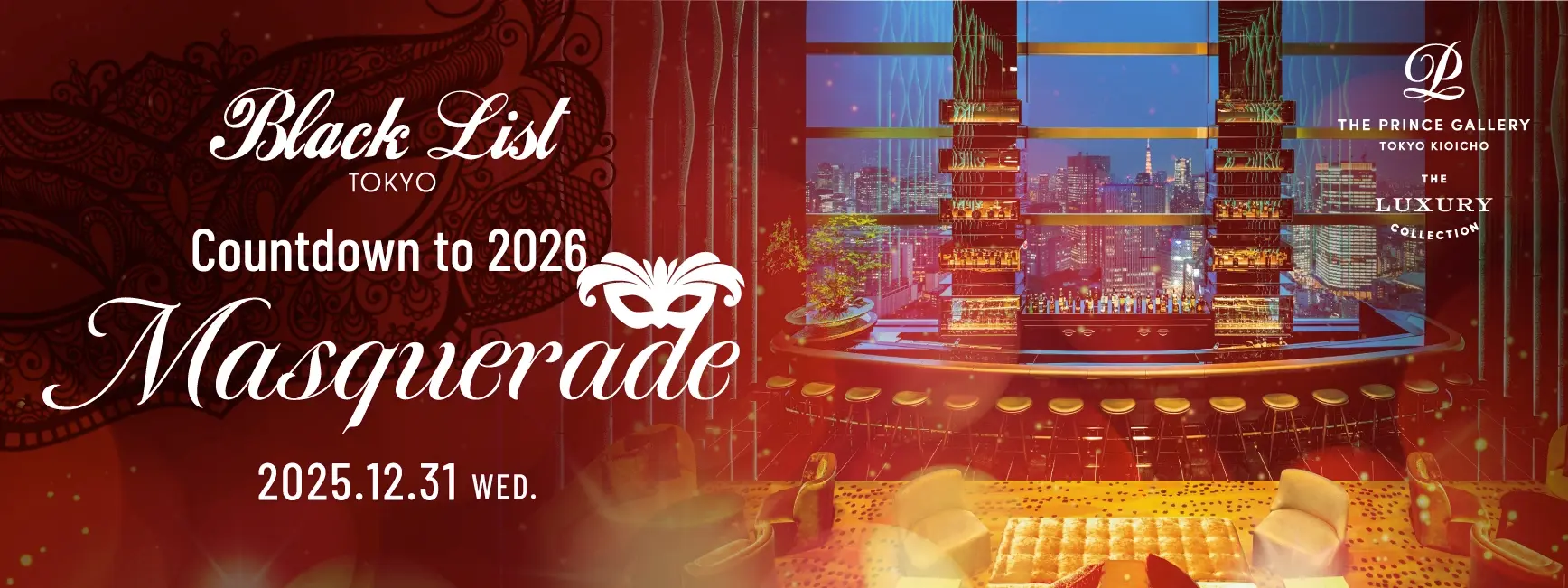 ブラックリスト東京は、東京を代表するラグジュアリーイベントエージェンシー兼メンバーシップクラブです。創立20周年を迎える今年、ブラックリストは東京の洗練されたVIPやインターナショナルコミュニティが集う、最もエクスクルーシブで象徴的な会場で毎月イベントを開催しています。今年で4回目となる本カウントダウンイベントのテーマは、魅惑的で洗練されたマスカレード(仮面舞踏会)。東京で最も華やかなニューイヤーズイブ・カウントダウンパーティーを共催いたします。ブラックリストは、ルイ・ヴィトンシティガイドやCNNにも「東京で最もエクスクルーシブなパーティー」として紹介されています。